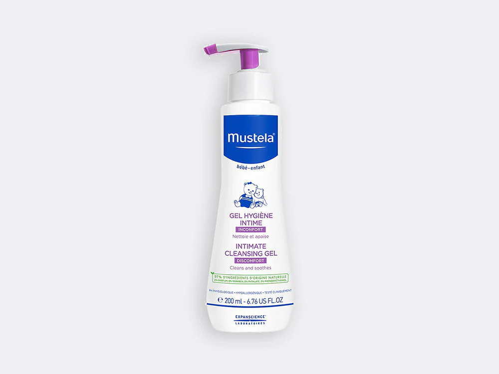 Dermatolojik olarak test edilmiş olan Mustela Gel Hygiene Intime, hassas ciltler için güvenli ve konforlu hijyen sağlar.