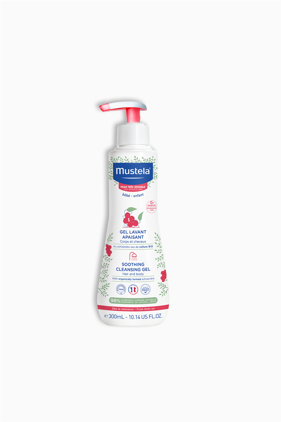Dermatolojik olarak test edilmiş olan Mustela Soothing Cleansing Gel, yenidoğan bebekler dahil tüm çocuklarda güvenle kullanılabilir ve günlük temizlik ile bakım rutinine uygundur.