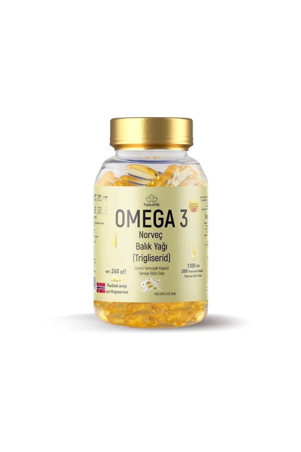 Naturlife Omega 3 Norveç Balık Yağı 200 Kapsül, Norveç’in soğuk ve temiz sularında yaşayan derin deniz balıklarından elde edilen saf ve yüksek saflıkta bir Omega-3 takviyesidir.